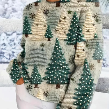 Coarse-needle Winter And Autumn Women's Sweater With Christmas-themed 3D Print And Crew Neck