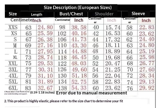 Sizes: XXS, XS, S, M, L, XL, XXL, 3XL, 4XL, 5XL, 6XL
