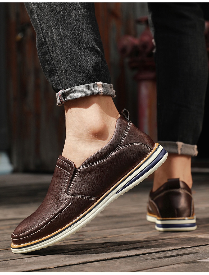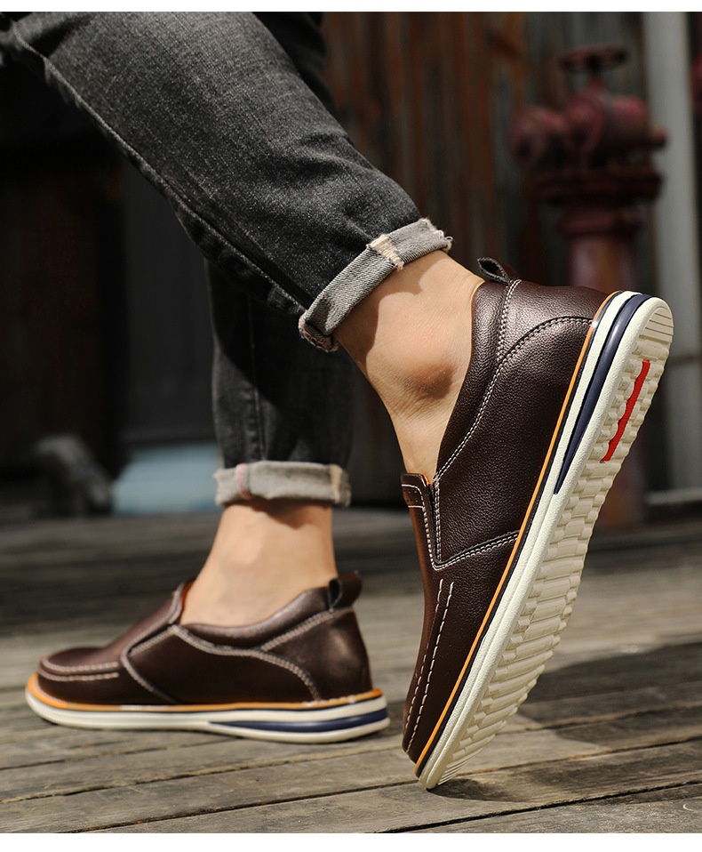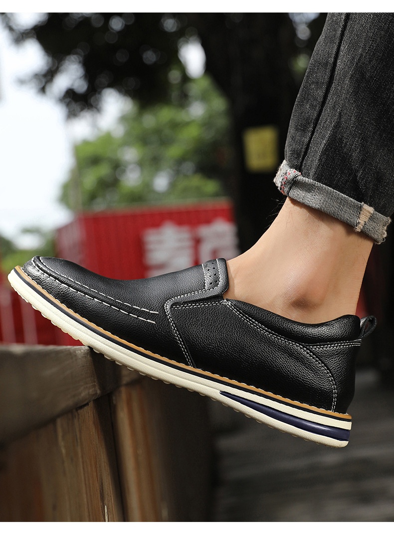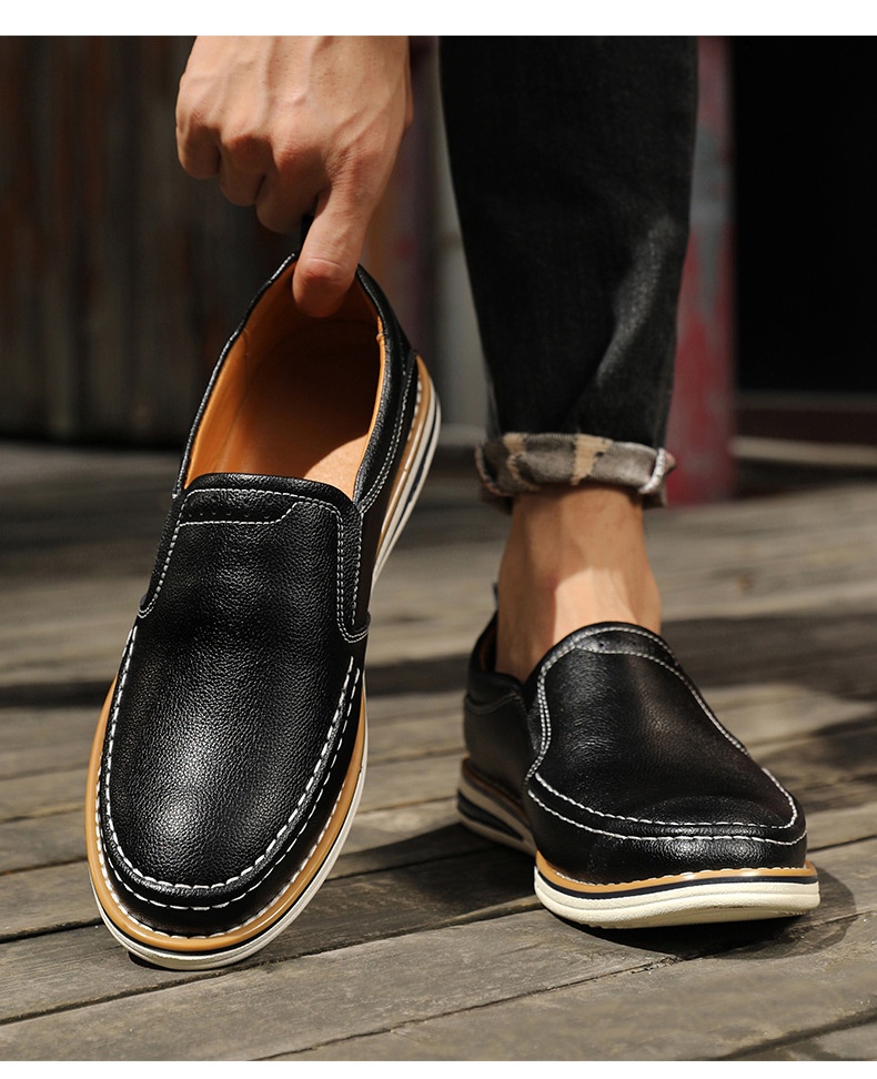 Hand-sewn Casual Leather Slip-on Bean Shoes