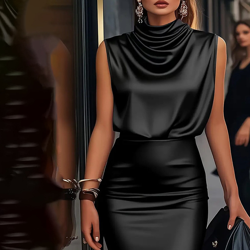 New Women's Solid Color Loose Fit Satin Casual Dress