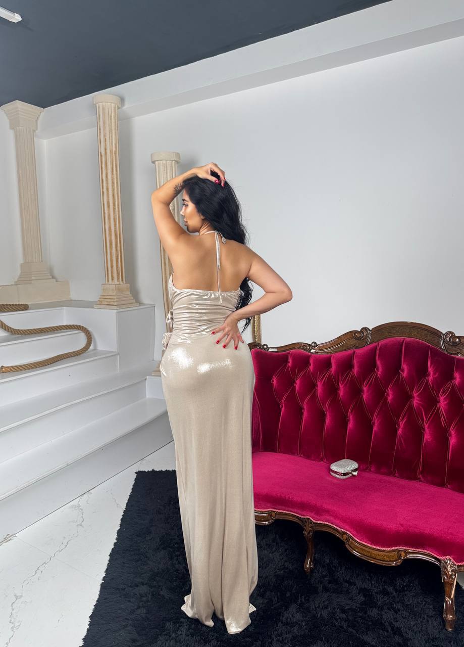Elevate your wardrobe with the Tasha Muffins women's dress, a sophisticated long dress featuring elegant side slits for added movement and style. Crafted to blend classic design with modern flair, this dress offers a flattering silhouette perfect for formal occasions or upscale events. Its refined cut and subtle detailing ensure a timeless look that enhances confidence and grace. Ideal for those seeking a balance of comfort and elegance in their evening wear.