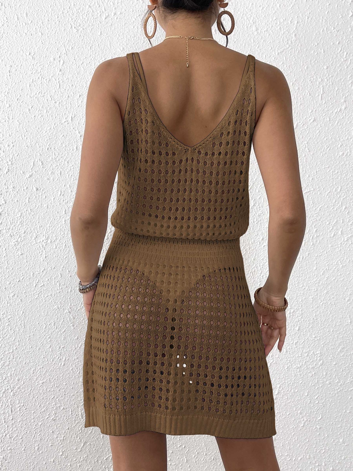 Waist-cinching V-neck Sheer Bikini Cover-up Beach Dress